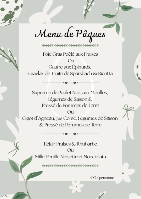 Pâques approche à grands pas & le Chef vous a préparé un menu spécial pour cette occasion !